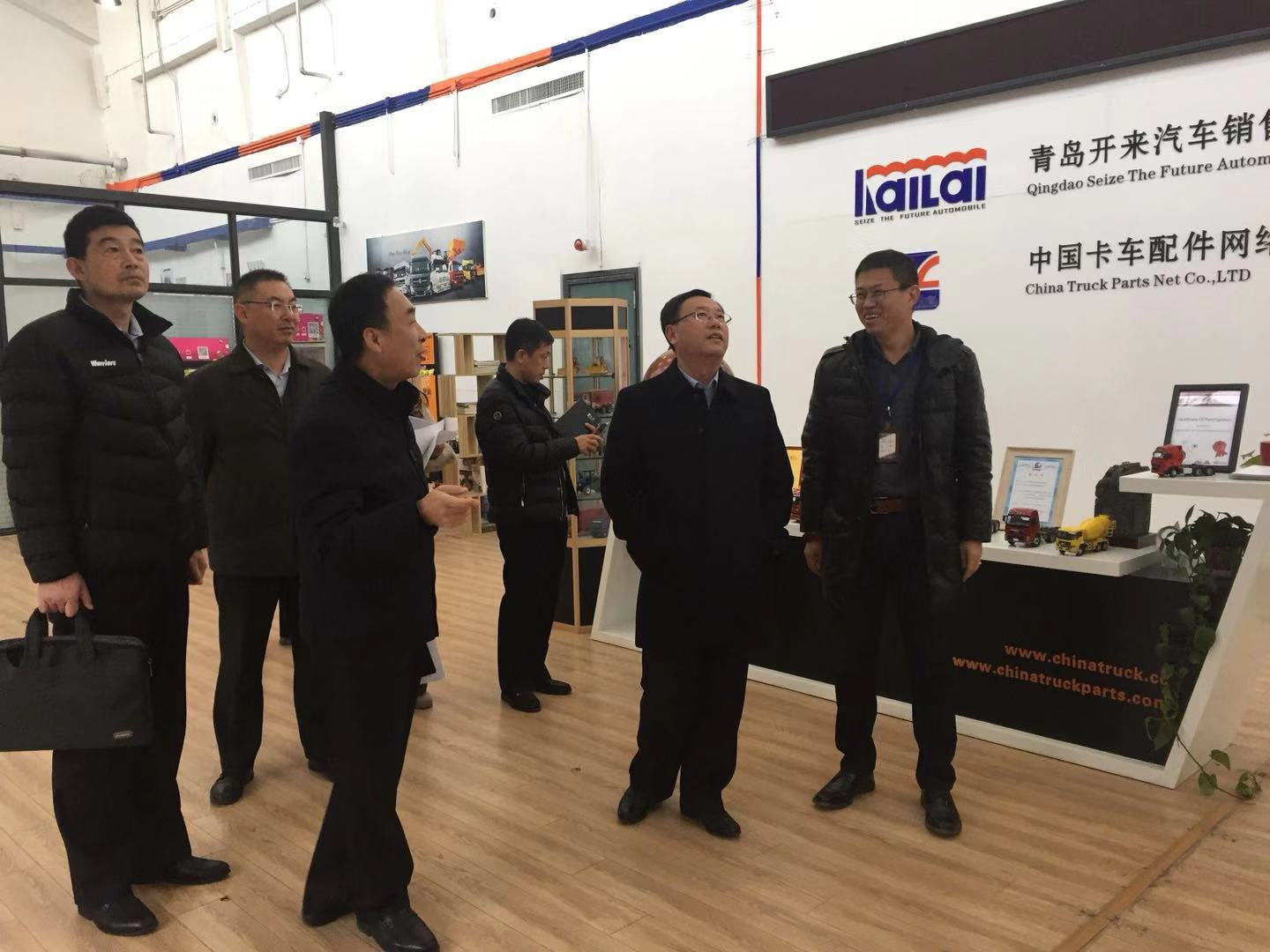隋总首先带领张区长一行参观了公司前台产品模型展厅,向领导们详细介绍了开来汽车海外产品销售、品牌建设和售后服务等情况,详细讲述了每款产品的功能及优势特点。隋总介绍到,青岛开来汽车销售有限公司成立于2004年,是一家外贸出口企业,是经国家工商行政管理局、国家发展计划委员会审查、核准的重型汽车经营单位。公司采用现代企业制度建立并发展成集国际、国内贸易于一体的营销公司并与国内,国外客户及外商建立了良好的合作关系。立足于青岛,与东南亚、中东、非洲、南美、拉丁美洲及西亚等百余家国外客户合作,得到国内外客商的充分认可与信赖,为中国卡车走向世界做出了杰出贡献。近年,公司扩大产品出口规模,丰富产品种类,受到了广大海外用户的一致好评。