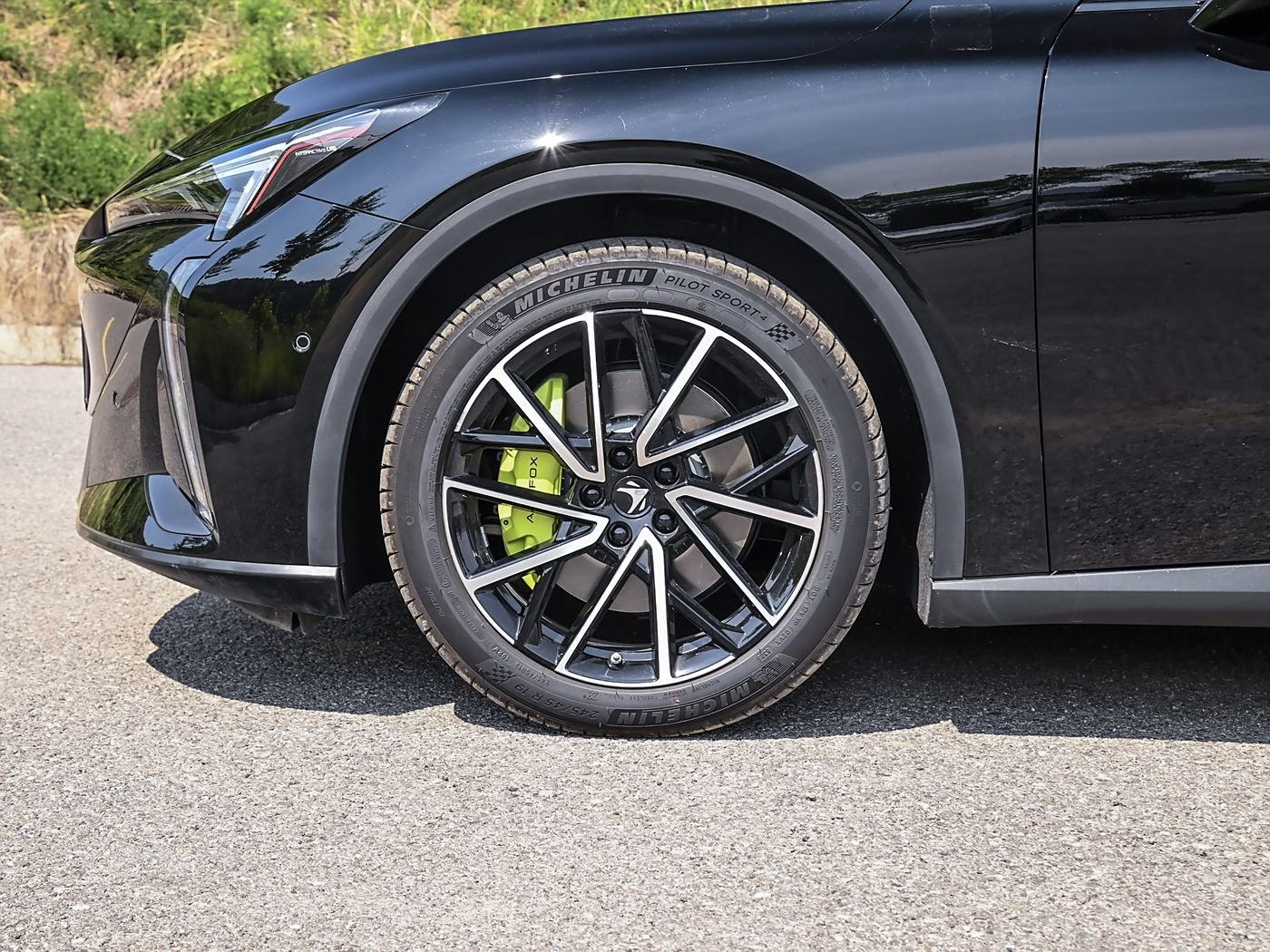 Sports tires, front four-piston calipers, painted green