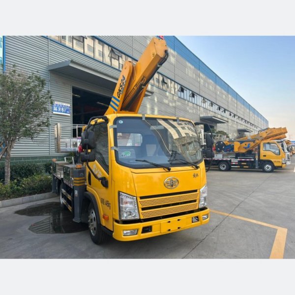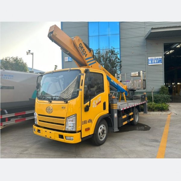 FAW 4×2 95 km/h Euro-VI 110 HP Manual 5-Speed 2 t/2.7 t Axles 22-28 m Straight-Arm TelescopiFAW 4×2 95 km/h Euro-VI 110 HP Manual 5-Speed 2 t/2.7 t Axles 22-28 m Straight-Arm Telescopic Boom Hydraulic Aerial Cage Truck for Salec Boom Hydraulic Aerial Cage
