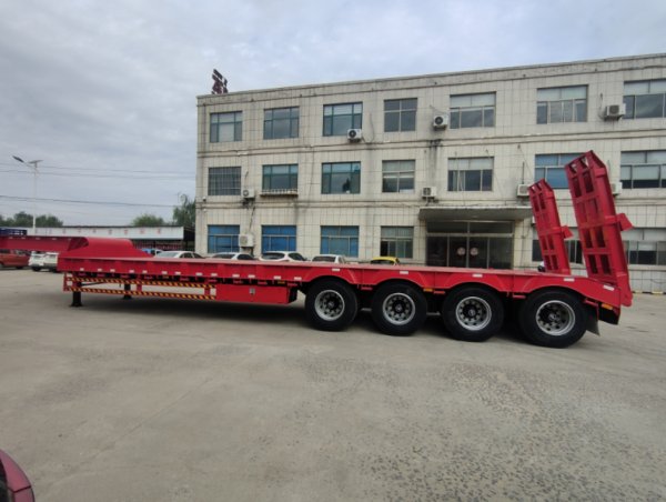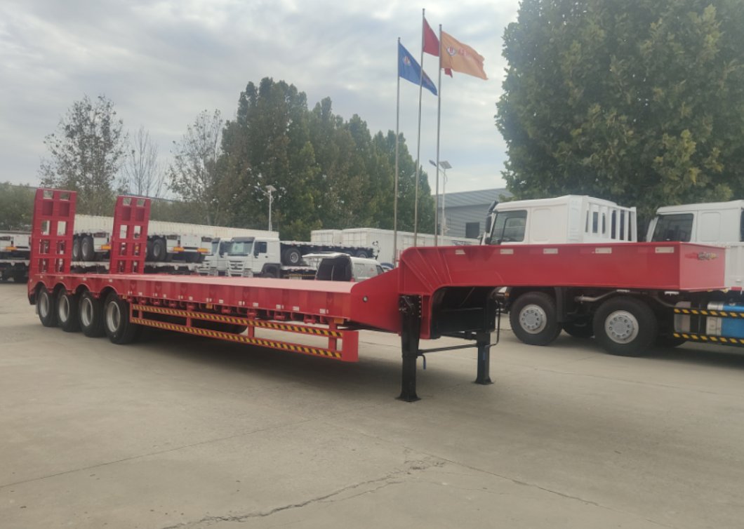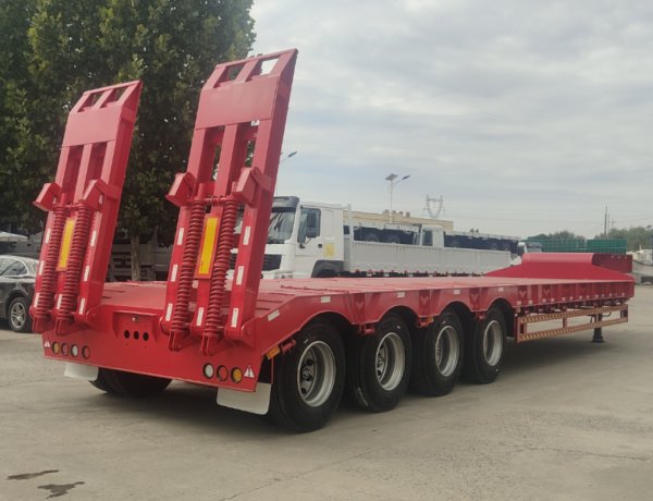 4axles 100t low bed trailer for sale is suitable for transporting oversized cargo such as industrial equipment, engineering vehicles, and mining machinery. It is an ideal choice for heavy-duty projects like bridge construction and mining development.