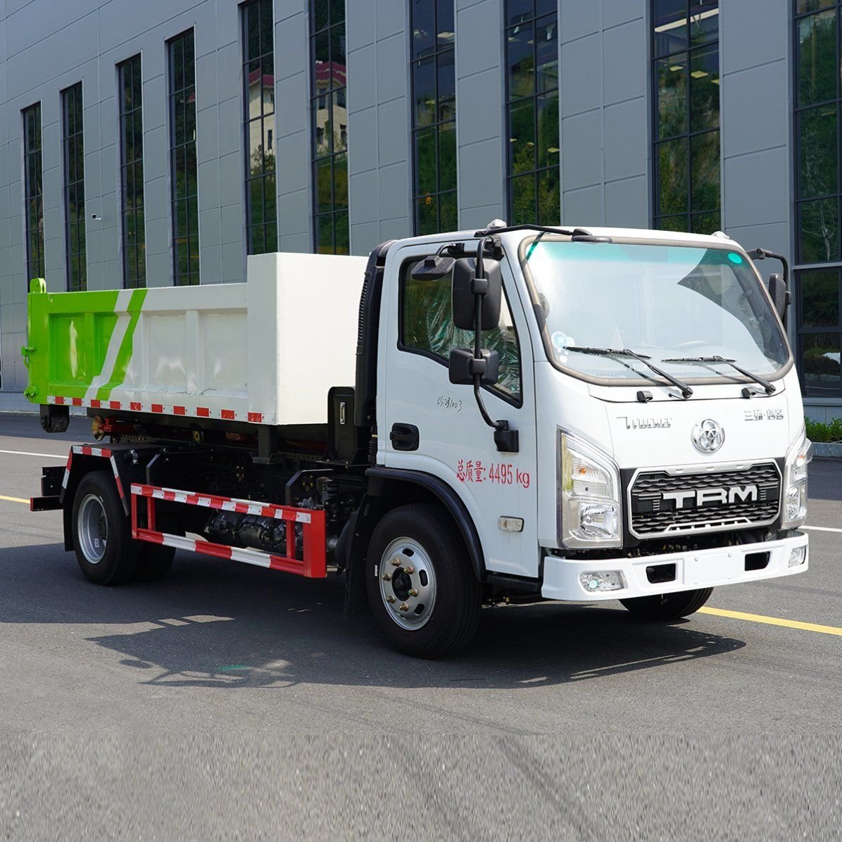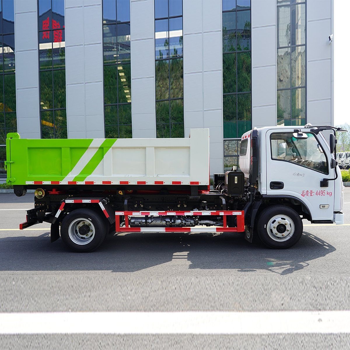 3.62m sealed bin: swap in ≤60s, lift ≤60s, self-unload ≤25s up & down, metal rolling wheels