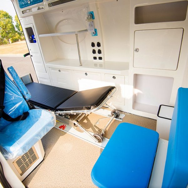 | Medical Van Information | White body + Red strong reflective tape and first aid logo, window of medical cabin posted Glass film |