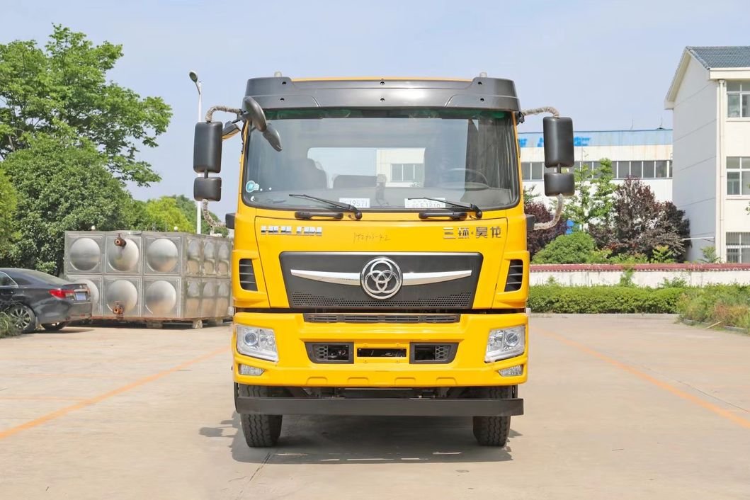 Heavy-duty chassis: 280×65(8+5)mm frame, 9/7+10+8 leaf springs, 4.875 ratio, 10.00R20-18 tyres, drum brakes with ABS