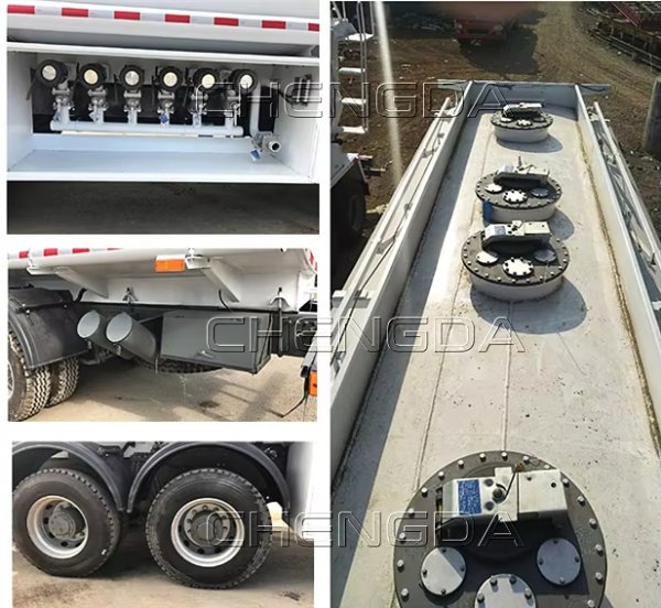 Chassis: 6×4, HF7 7 T front + ST16 16 T rear axle, 295/80R22.5 (11 tyres).