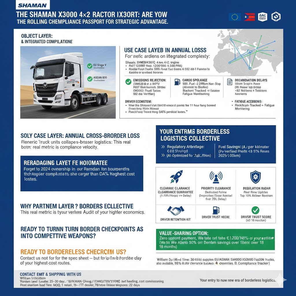 **This Isn’t a Tractor Unit – It’s 227,000+ monthly to border friction. The SHACMAN X3000 4×2 isn’t built for roads – it’s engineered as a rolling compliance passport that converts border checkpoints into strategic advantages.