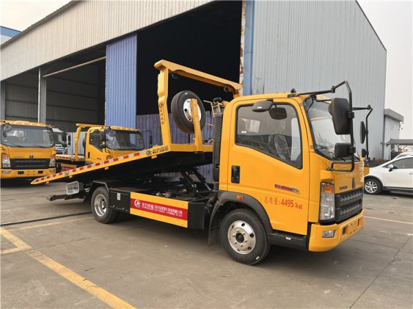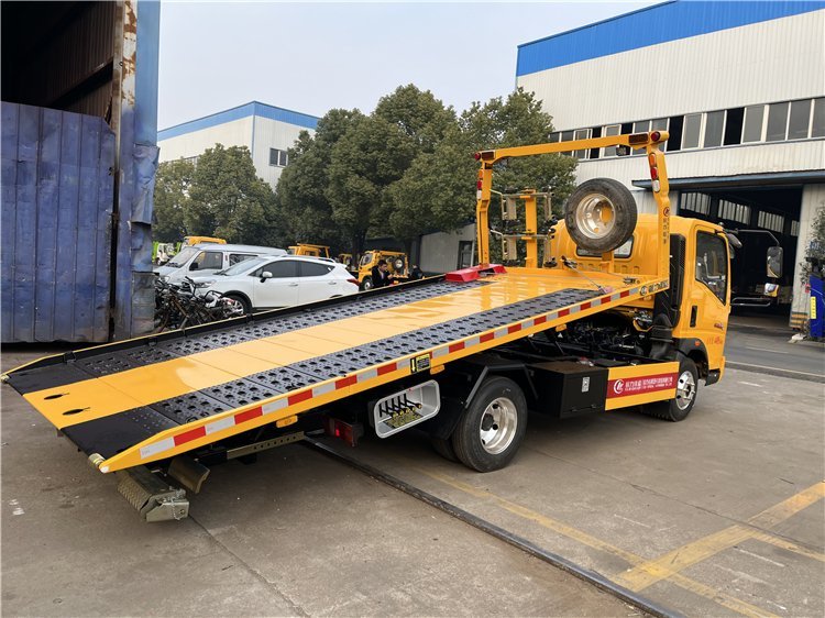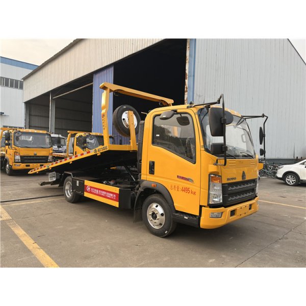 SINOTRUK HOWO 4×2 90 km/h Euro-II 110 HP Manual 6-Speed 2 t/3 t Axles 4 t Payload 5100×2300 mm Slide Flatbed 3-Ton One-Tow-Two Road Wrecker Tow Truck for Sale