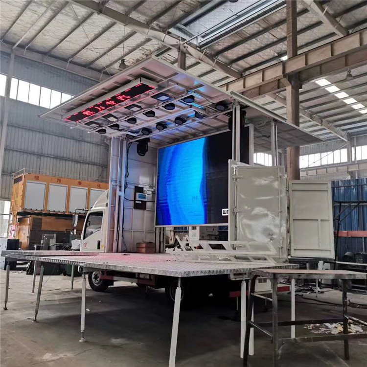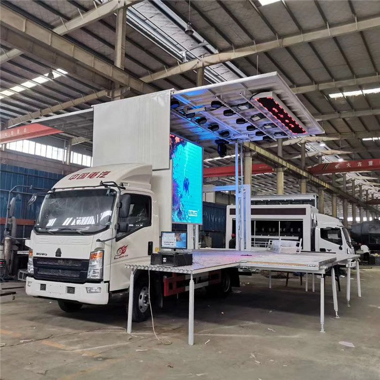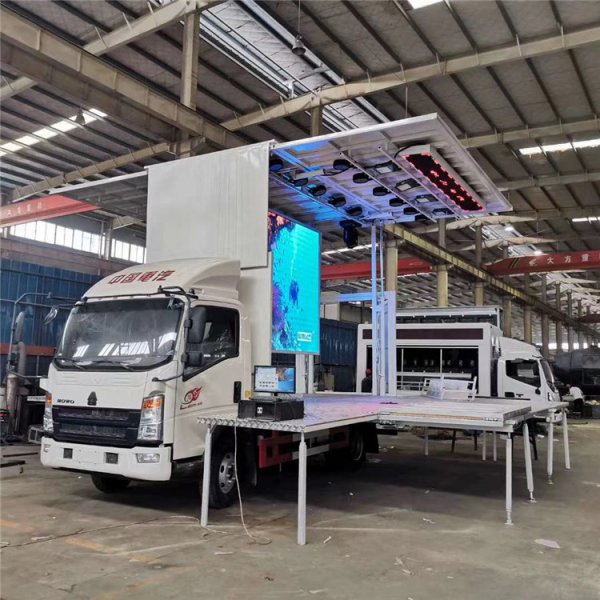 This mobile stage truck is designed to provide instant stage solutions for various events. It features hydraulic stage openings, a foldable stage, and an LED screen, making it ideal for corporate events, concerts, and festivals. The truck offers customizable options to fit your specific needs.