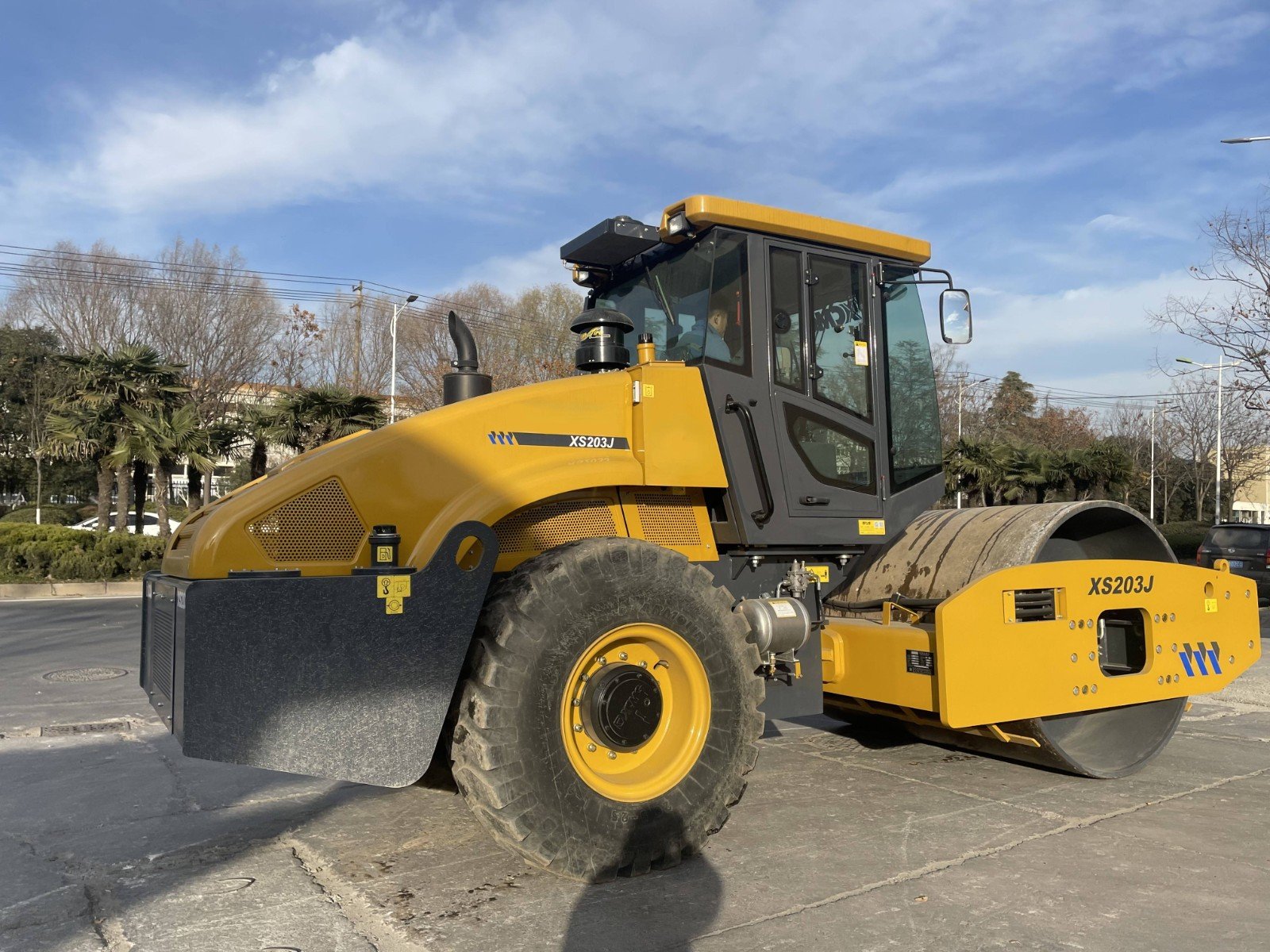 This Algeria-dedicated XS203J 20-ton single-drum mechanical vibratory roller is engineered for high-speed highway, municipal road and airport runway construction in North-African conditions.